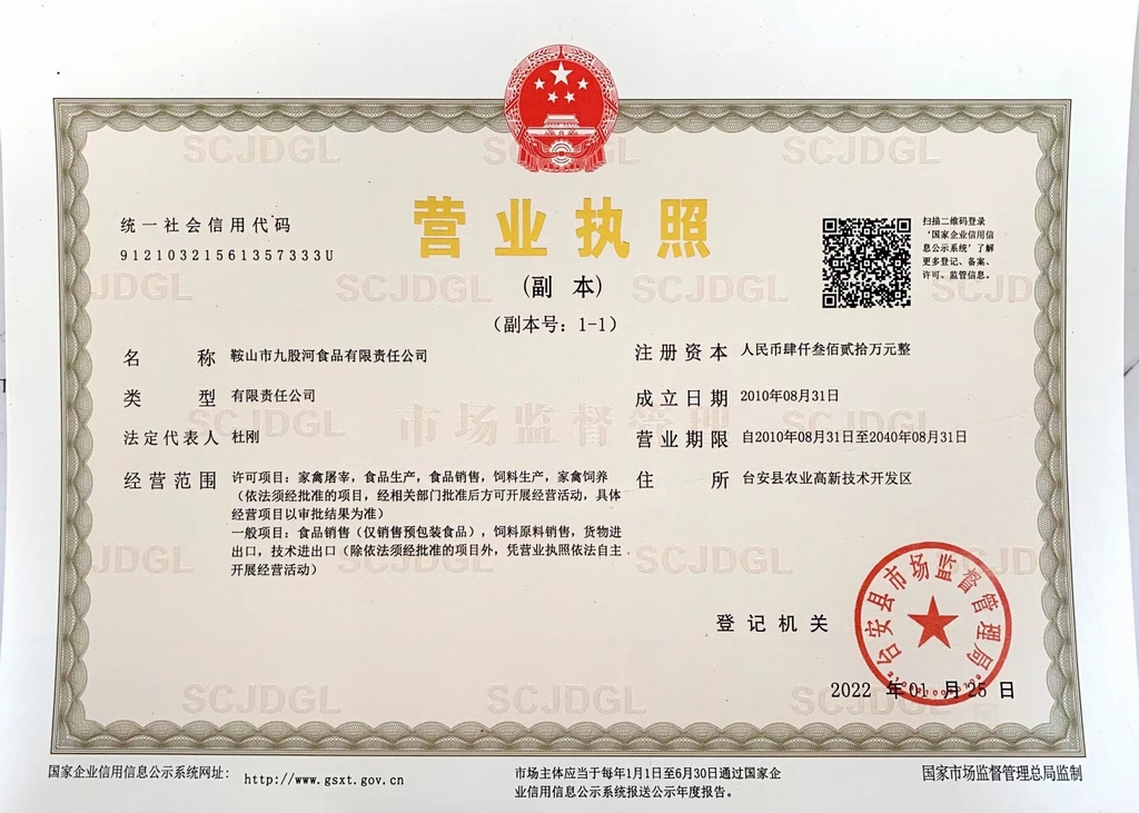 1997年丨九股河誕生于遼寧臺安,成立臺安縣九股河農業發(fā)展有限公司2003年丨九股河走進錦州市,在凌海成立凌海九股河食品有限公司2008年丨成立凌海九股河飼料有限公司2010年丨九股河與禾豐合作后,成立鞍山市九股河食品有限責任公司,從此,禾豐九股河走進了高速發(fā)展之路2011年丨繼續(xù)在遼西闊步,成立葫蘆島九股河食品有限公司同年,臺安縣九股河農業發(fā)展有限公司養殖部成立,按下規(guī)模化籠養小區建設的快進鍵2